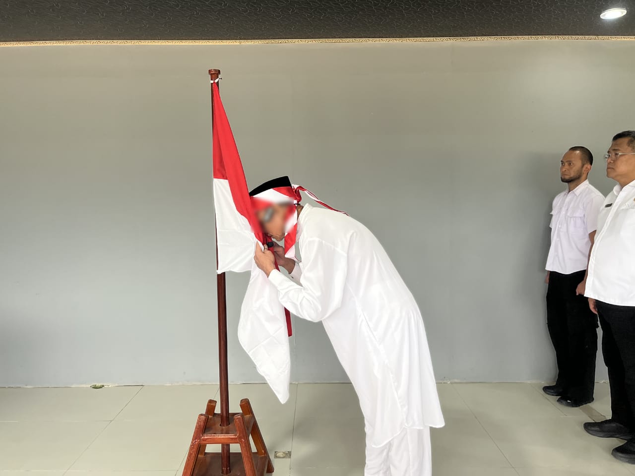 Dalam momen penuh haru itu, AM membacakan ikrar setia di bawah kitab suci Al-Qur’an, lalu mencium bendera Merah Putih di hadapan para saksi dari unsur BNPT, Densus 88, BIN Daerah Kaltara, Kodim 0907 Tarakan, Kejaksaan Negeri, Pengadilan Negeri, Polsek Tarakan Barat, Kesbangpol Tarakan, Kemenag Tarakan, dan Balai Pemasyarakatan Tarakan.