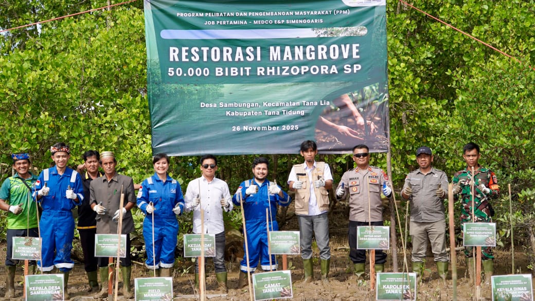 TANA TIDUNG, CAKRANEWS – JOB Pertamina-Medco E&P Simenggaris (JOB Simenggaris) kembali menunjukkan komitmennya dalam menjaga keberlanjutan lingkungan dengan melaksanakan Penanaman 50.000 propagule Mangrove di pesisir Pantai Desa Sambungan, Kecamatan Tana Lia, Kabupaten Tana Tidung, pada Rabu (26/11).