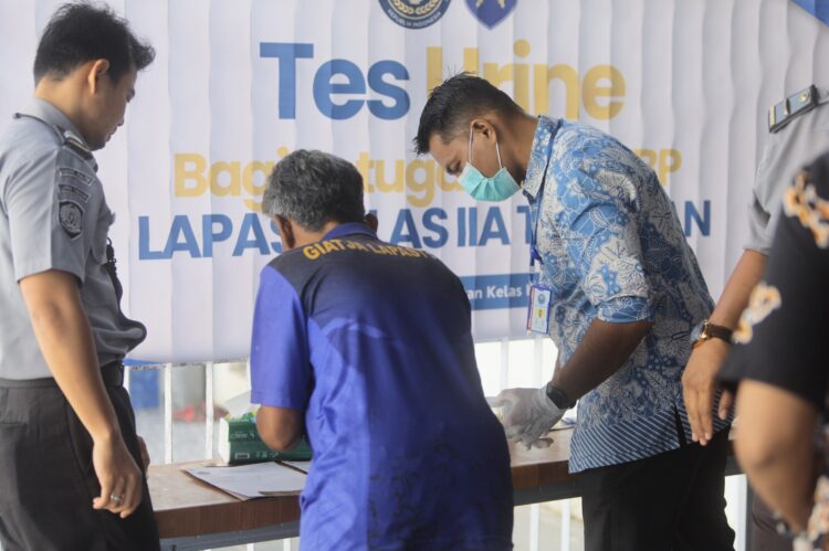 TARAKAN, CAKRANEWS – Lembaga Pemasyarakatan (Lapas) Kelas IIA Tarakan bekerjasama dengan Badan Narkotika Nasional Provinsi (BNNP) Kalimantan Utara, menggelar kegiatan test urine yang diikuti puluhan orang petugas pemasyarakatan beserta para Warga Binaan Pemasyarakatan (WBP) bertempat di ruang kunjungan serbaguna, Selasa (08/7/2025).